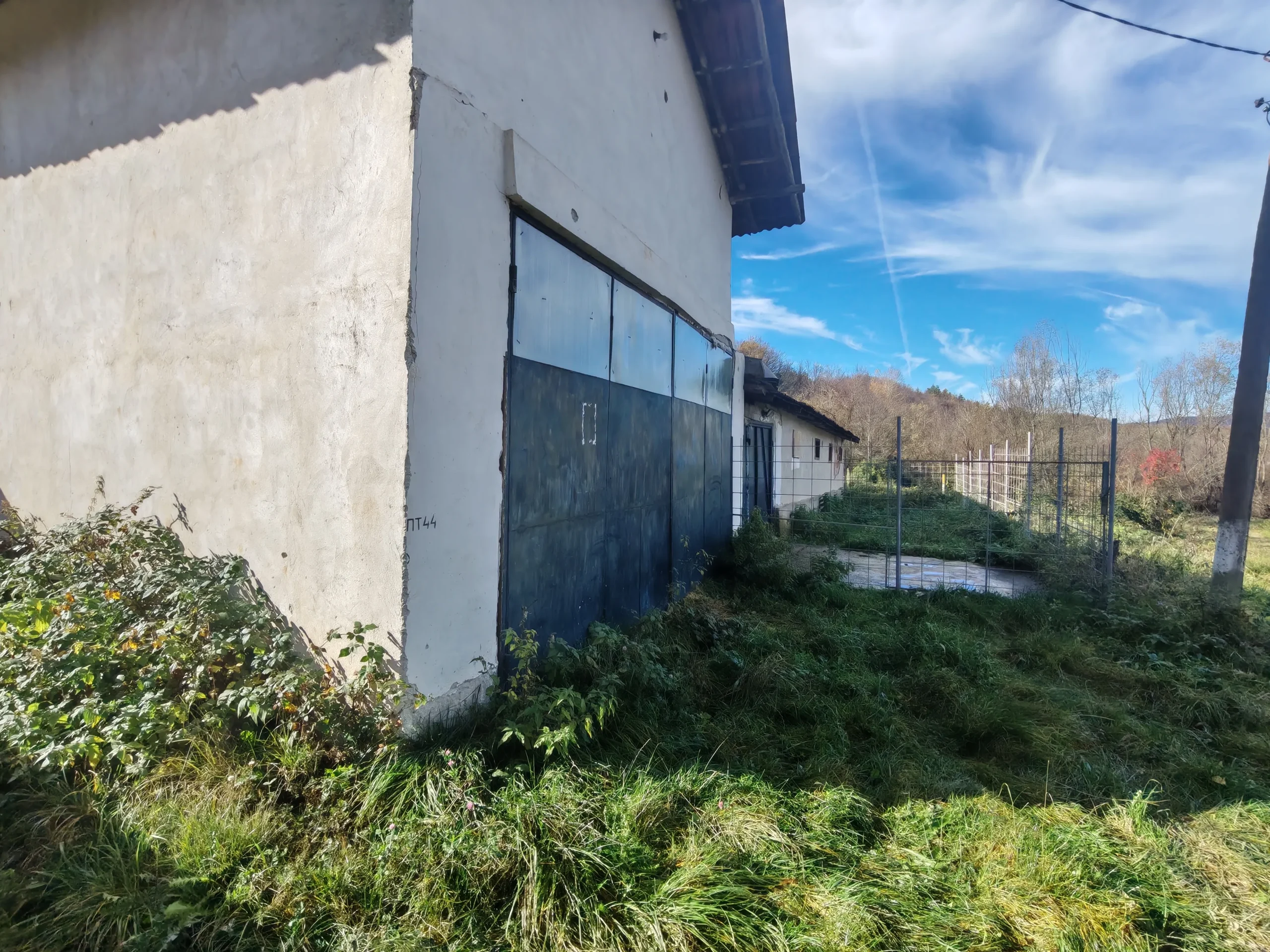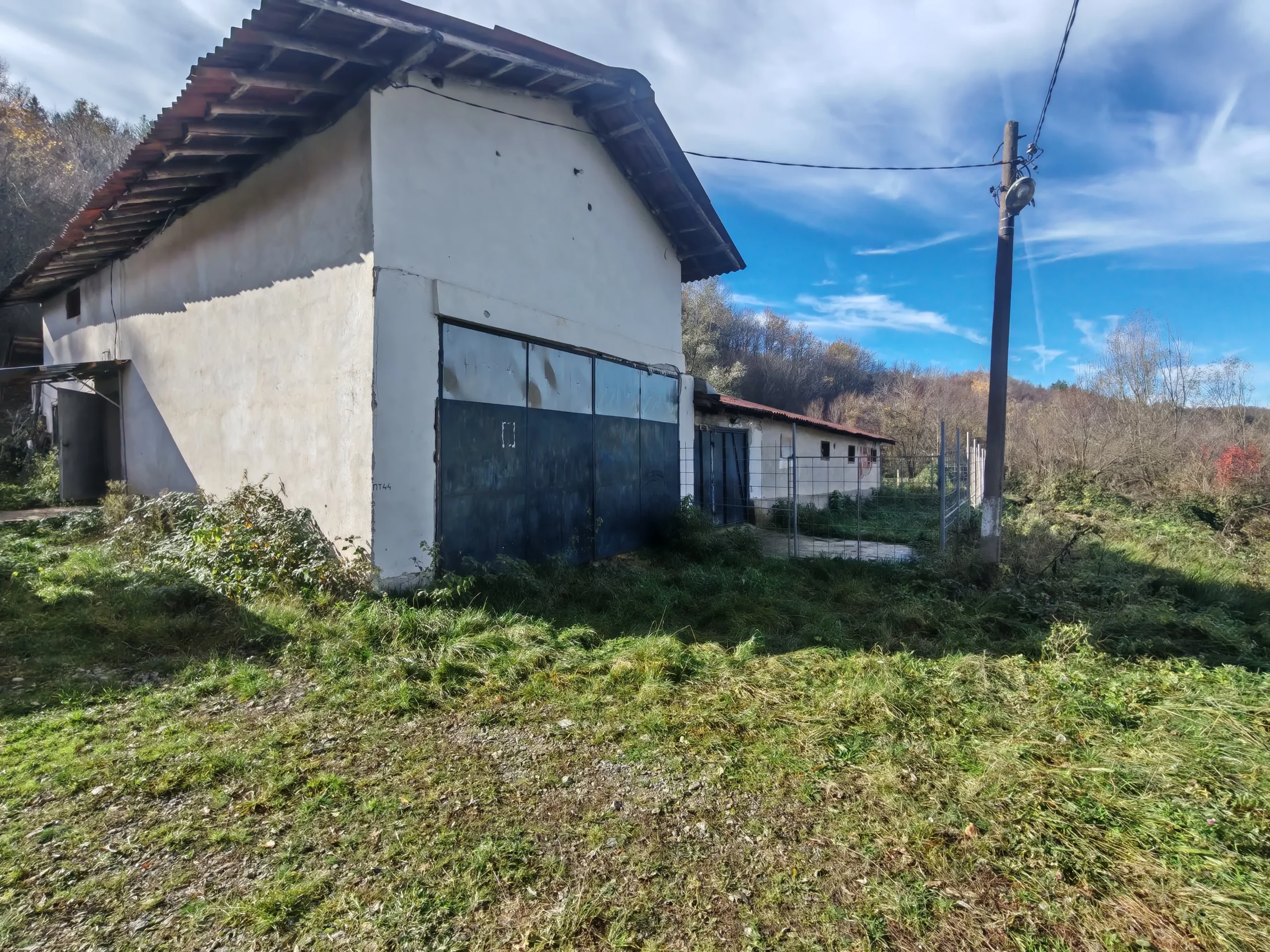🔹 Разпределение: входно антре, две обслужващи стаи, голямо хале/склад с допълнителен втори етаж за складиране на продукция, селскостопанска постройка (оборудвана за отглеждане на животни).